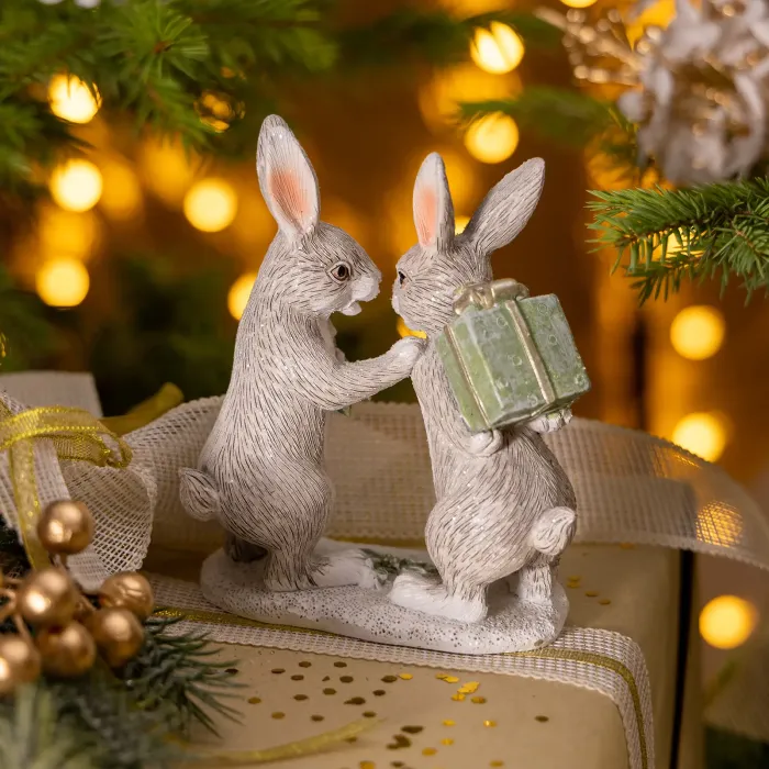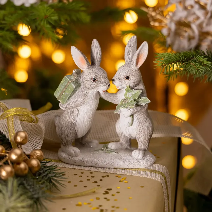 Статуэтка Кролики гармонично сочетается с другими предметами декора из серии Новый Год!. Она станет отличным дополнением к тематическому оформлению помещения или подарком для ценителей красивых интерьерных решений.