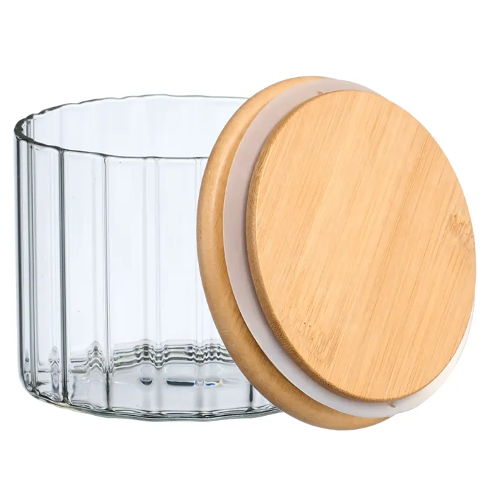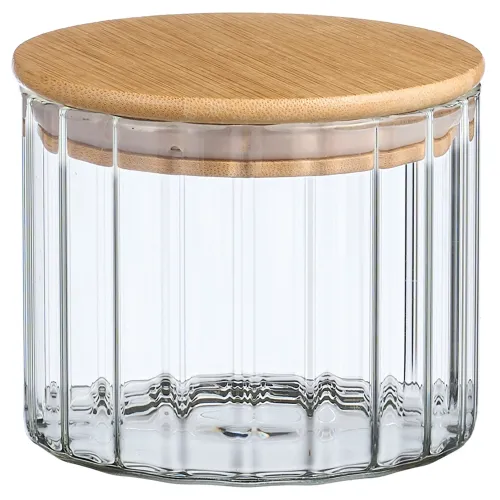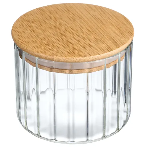 Корпус банки выполнен из прочного стекла, что позволяет визуально контролировать количество продукта. Крышка изготовлена из бамбука и обеспечивает плотное закрытие, препятствуя проникновению влаги и запахов. Объём ёмкости рассчитан на хранение небольших порций сыпучих продуктов.