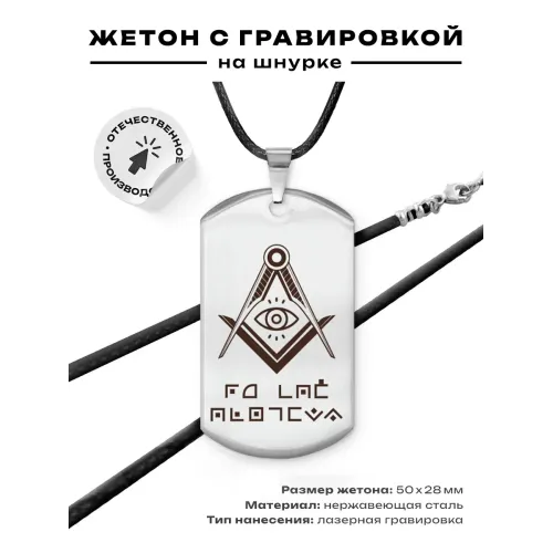 Амулет-жетон из нержавеющей стали с зеркальной полировкой и гравировкой.
