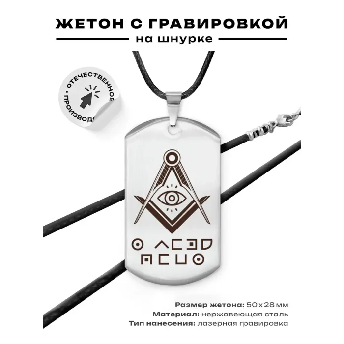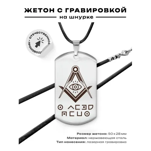 Амулет-жетон для ношения. Изготовлен из полированной нержавеющей стали, изображение нанесено методом гравировки.