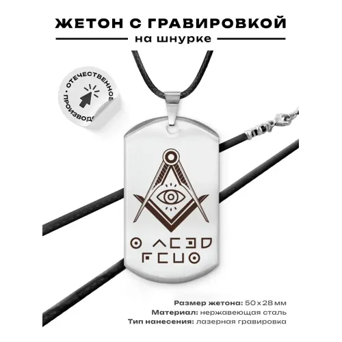 Амулет-жетон из полированной нержавеющей стали с гравировкой.