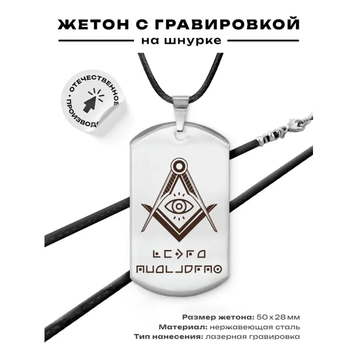 Амулет-жетон сувенирный из полированной нержавеющей стали с гравировкой.