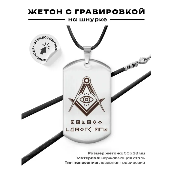 Амулет-жетон из полированной нержавеющей стали с гравировкой.