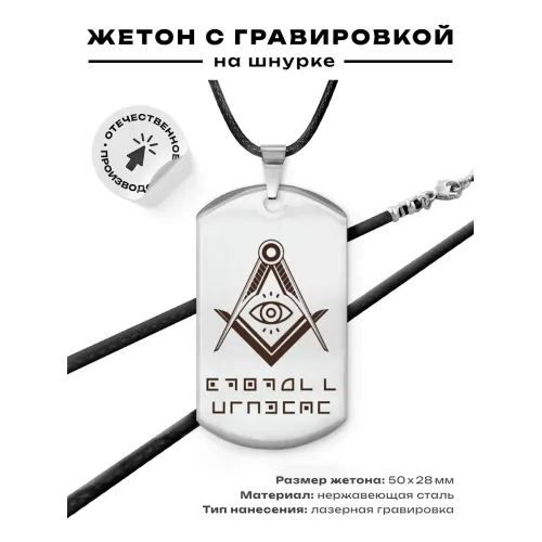 Амулет-жетон из полированной нержавеющей стали с односторонней гравировкой.