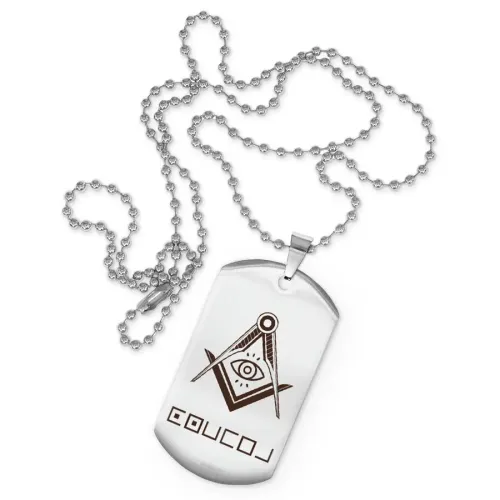 Сувенирный жетон на цепочке с гравировкой. Изготовлен из нержавеющей стали.