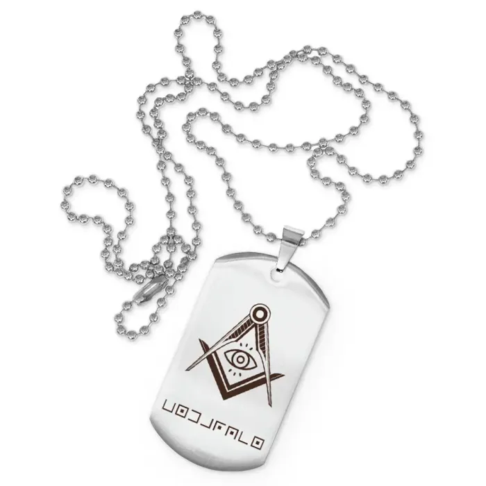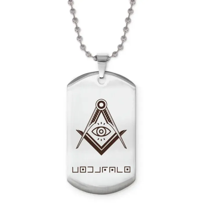 Сувенирный жетон на цепочке из нержавеющей стали с гравировкой.