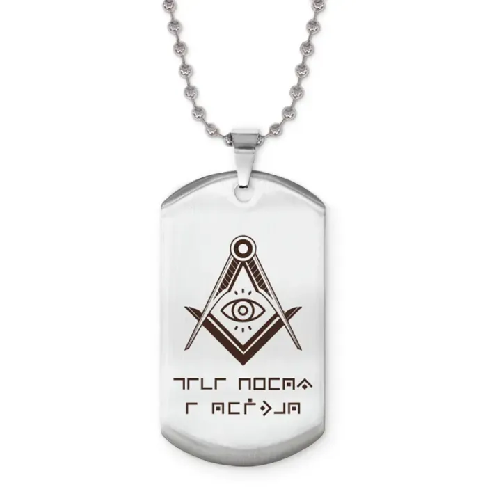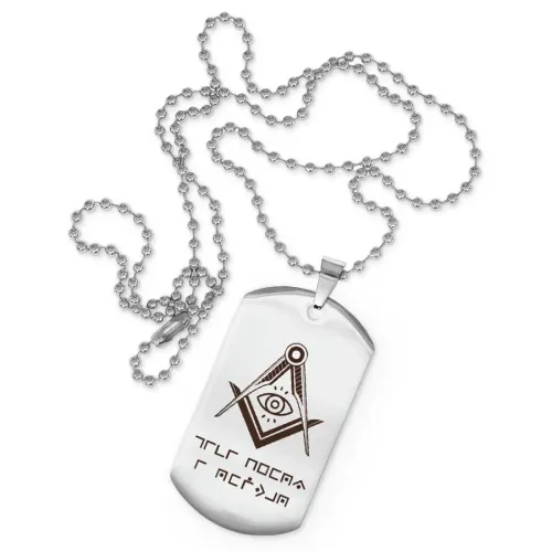 Жетон на цепочке с гравировкой «Живи здесь и сейчас». Материал — полированная нержавеющая сталь.