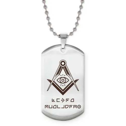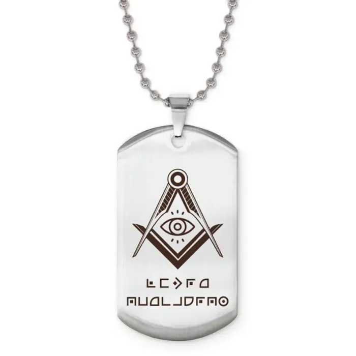 Жетон на цепочке для ношения. Изготовлен из полированной нержавеющей стали с гравировкой изображения на одной стороне.