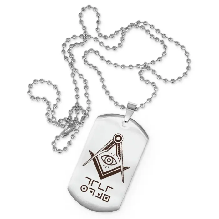 Жетон на цепочке из полированной нержавеющей стали с гравировкой.