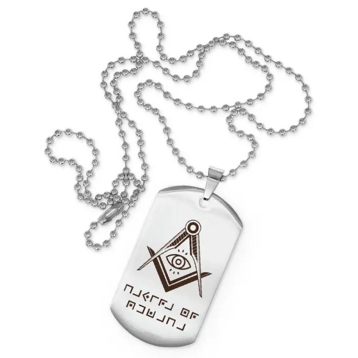 Жетон на цепочке из нержавеющей стали с гравировкой.