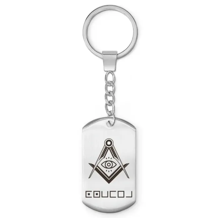 Брелок-жетон из полированной нержавеющей стали с гравировкой изображения.