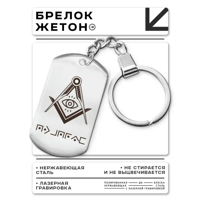 Брелок-жетон из полированной нержавеющей стали с гравировкой.