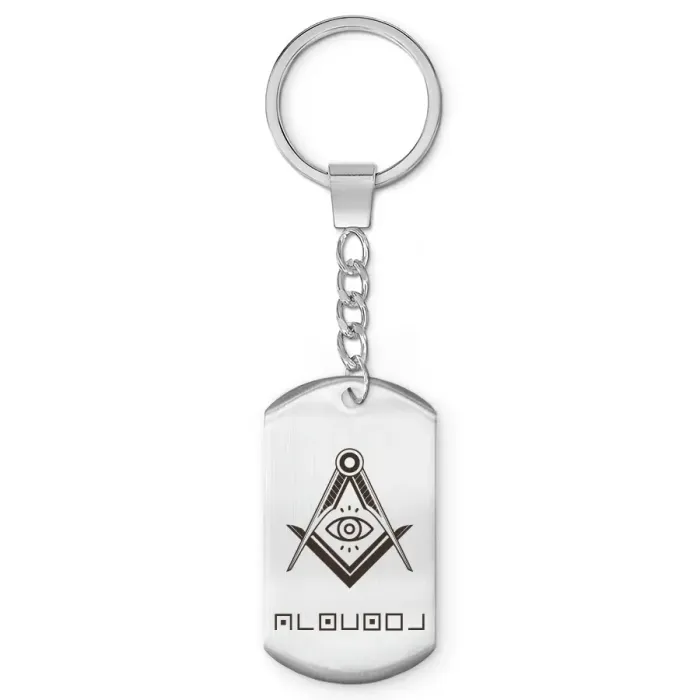 Брелок-жетон из нержавеющей стали с полированной поверхностью и гравировкой.