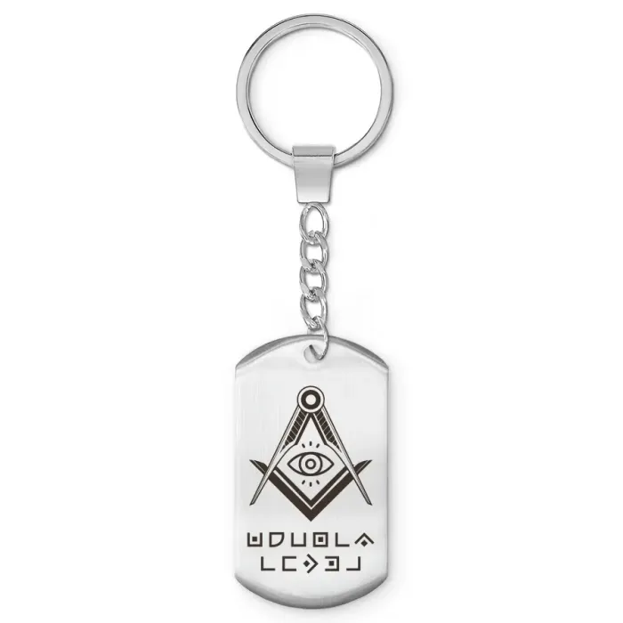 Брелок-жетон из полированной нержавеющей стали с гравировкой.