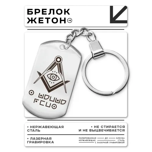 Размеры и комплектация: Размер жетона 50х28 мм. В комплекте кольцо для ключей на цепочке. Упаковка — прозрачный пакет.