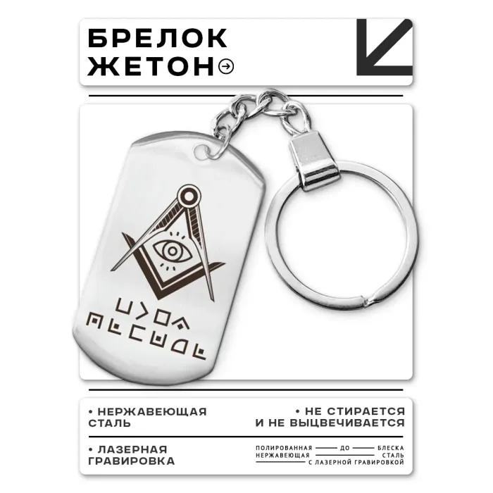 Брелок-жетон из полированной нержавеющей стали с гравировкой.