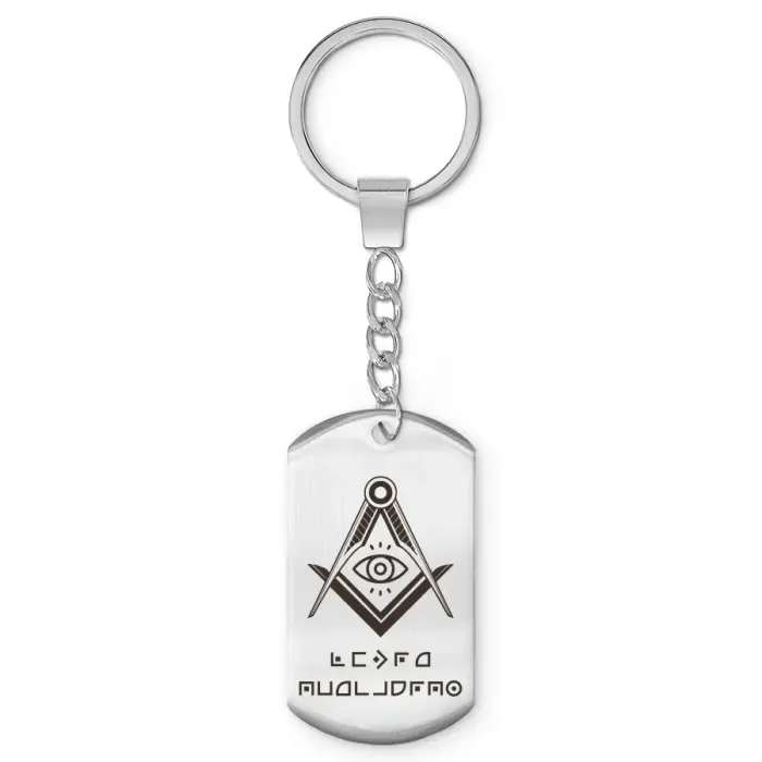Брелок-жетон из полированной нержавеющей стали с гравировкой.