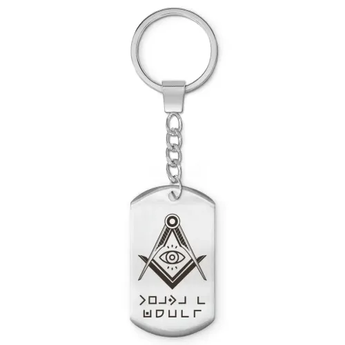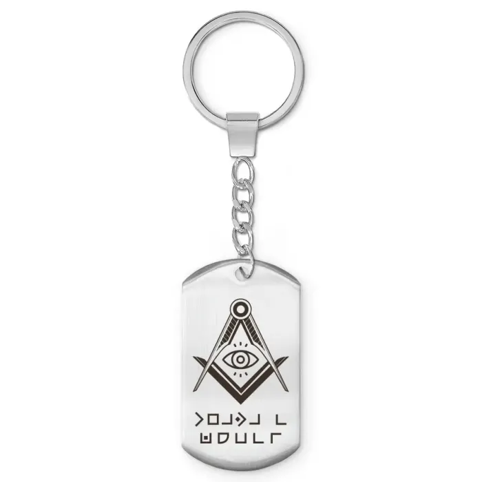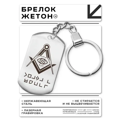 Брелок-жетон из полированной нержавеющей стали с гравировкой на одной стороне.