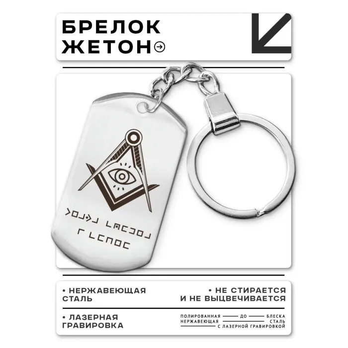 Брелок-жетон из полированной нержавеющей стали с гравировкой.