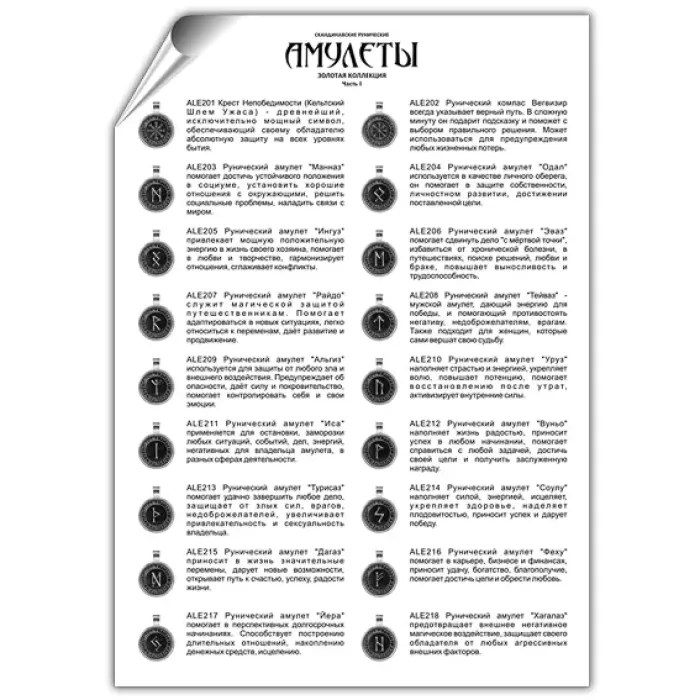 Описание амулетов Золотой коллекции на 3 листах ALL02
