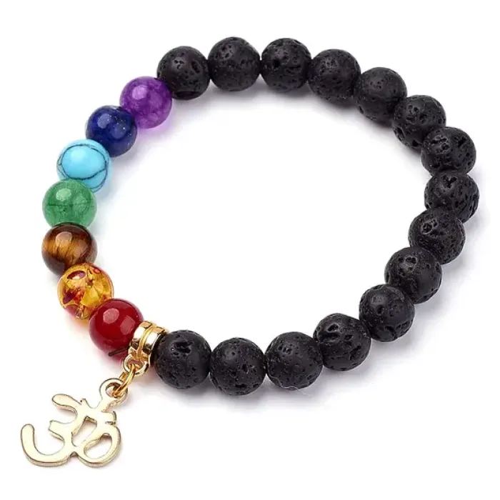 Браслет с подвеской Ом из натурального камня лава BJBS-056