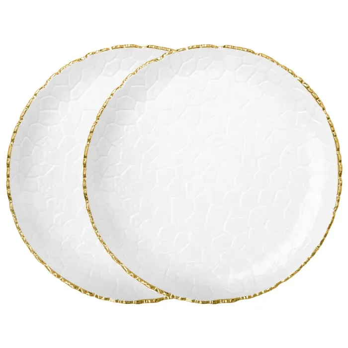 Набор из двух обеденных тарелок Lefard Charm предназначен для сервировки основных блюд. Изделия изготовлены из фарфора и отличаются декоративной золотой линией по краю.