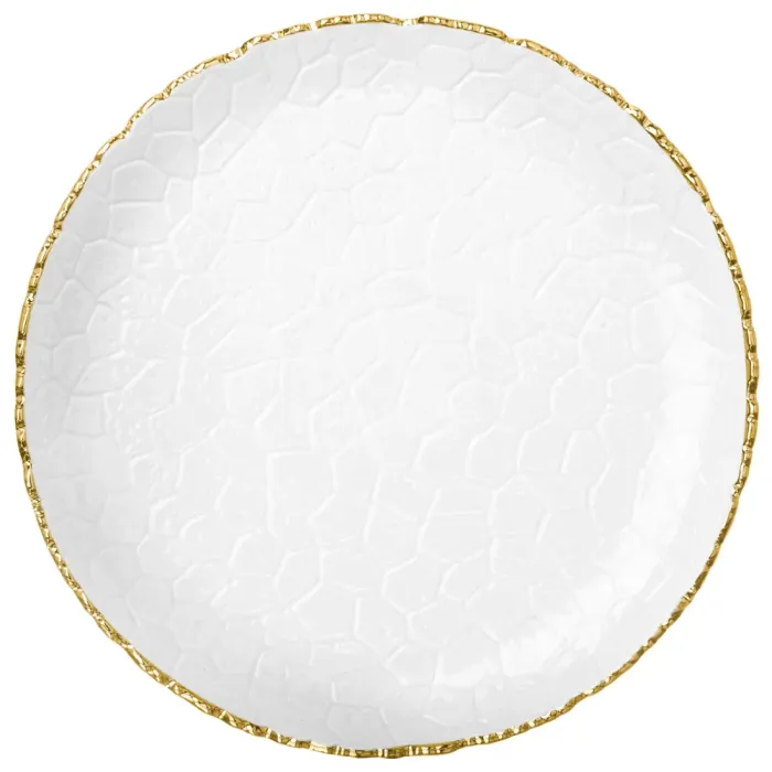 Тарелки выполнены из фарфора, что обеспечивает прочность и гигиеничность. Поверхность гладкая, что облегчает уход. Декоративная золотая линия нанесена по внешнему краю, выполняя эстетическую функцию.