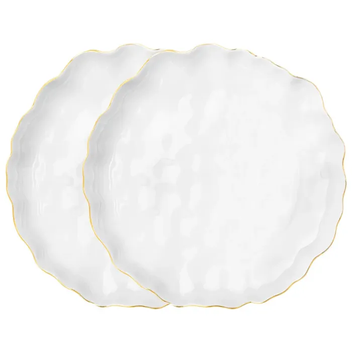 Набор закусочных тарелок Charm от бренда Lefard состоит из двух предметов диаметром 20 см. Тарелки предназначены для подачи закусок и десертов. Ключевой особенностью дизайна является декоративная золотая линия по краю.