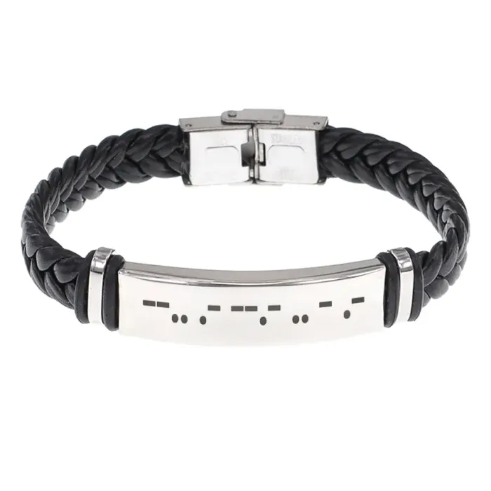 Кожаный браслет с гравировкой «Защита» для ношения на запястье.