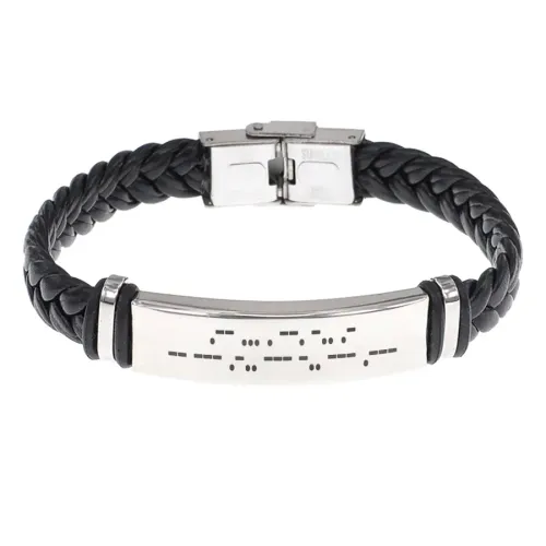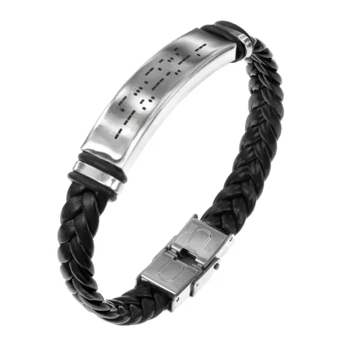 Кожаный браслет с плетением и гравировкой «Всегда молодой».