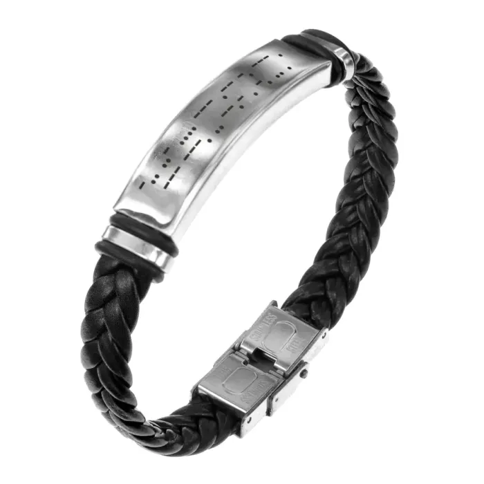 Кожаный браслет с гравировкой «Духовное очищение». Плетёный аксессуар.