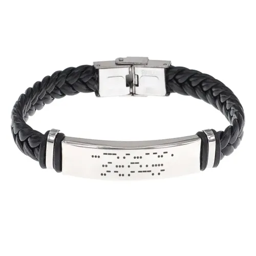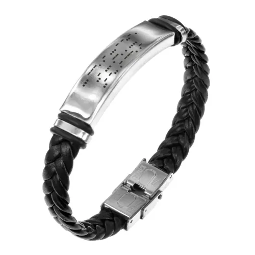 Кожаный браслет с плетением и гравировкой «Счастье, удача, успех».