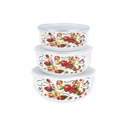 Набор мисок эмалированных 3 предмета пластиковая крышка Ягодный микс TM Appetite