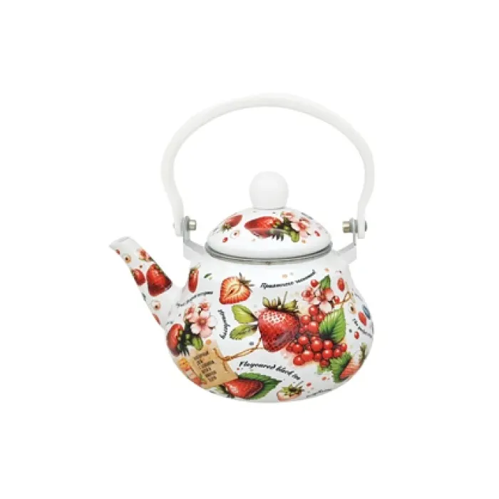 Корпус выполнен из стали с эмалевым покрытием, которое не влияет на вкус напитков. Чайник оснащён плотно закрывающейся крышкой и носиком для предотвращения проливания. Украшен ярким рисунком.