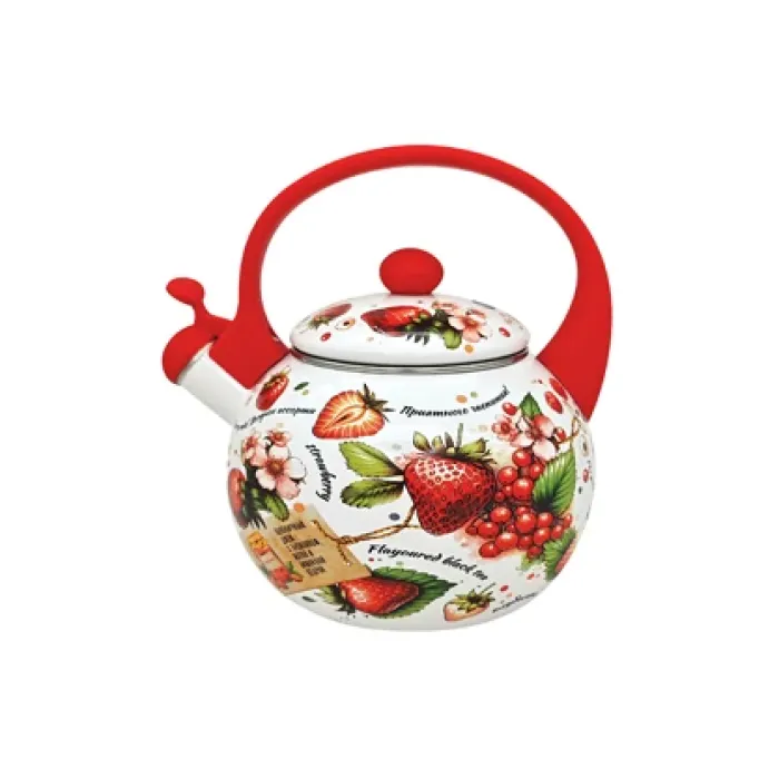 Чайник из эмалированной стали сочетает в себе преимущества керамической, стеклянной посуды и нержавеющей стали. Удобная фурнитура выполнена из термостойкого материала, а свисток сигнализирует о закипании воды, помогая экономить ресурсы. Подходит для всех типов плит: газовых, индукционных, электрических и стеклокерамических.