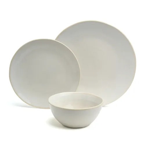 Посуда выполнена из фарфора, что обеспечивает её долговечность и устойчивость к воздействию бытовой химии. Набор представлен в бежевом цвете, который можно сочетать с синим из той же коллекции, создавая уникальные комбинации. Подходит для использования в микроволновой печи, холодильнике и посудомоечной машине.