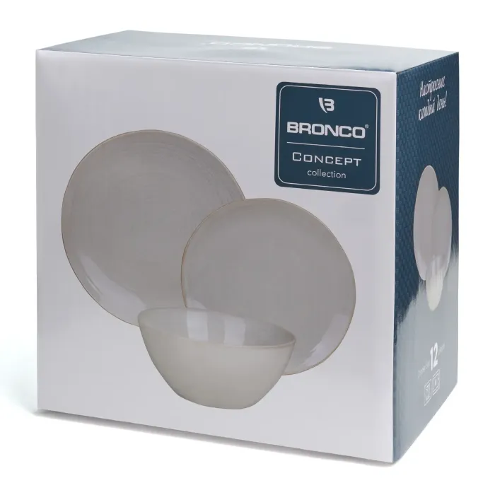 Обеденный набор на 4 персоны из коллекции Concept от TM Bronco включает 12 предметов и предназначен для создания стильной сервировки. Современные формы и прочная глазурь делают этот набор привлекательным выбором для ежедневного использования.