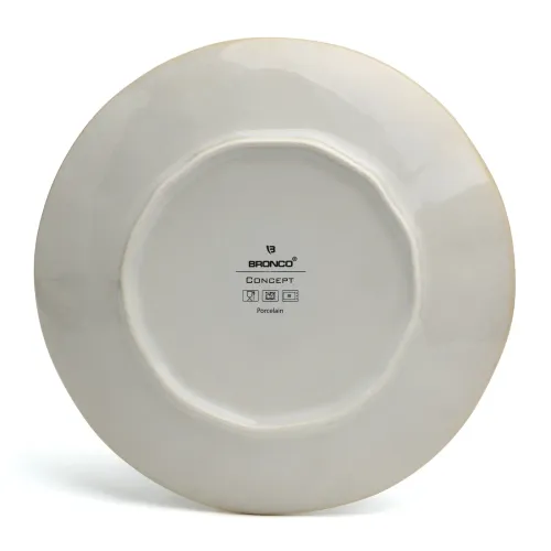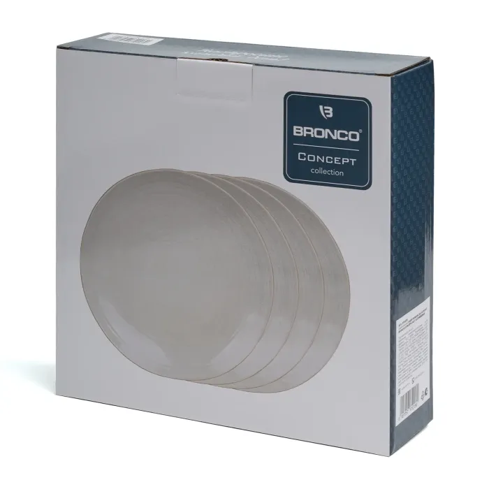 Набор закусочных тарелок Concept от бренда Bronco предназначен для сервировки стола. Изделия выполнены из фарфора и представлены в коллекции, включающей бежевый и синий цвета.