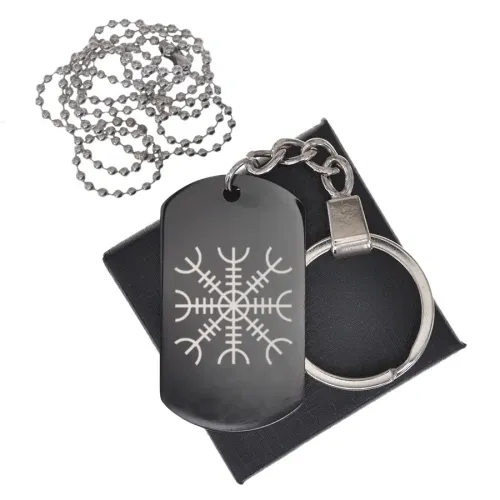 Сувенирный жетон из полированной нержавеющей стали с гравировкой символа «Крест непобедимости (Шлем ужаса)».