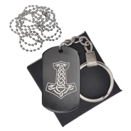 Сувенирный жетон из черной нержавеющей стали с гравировкой символа Молота Тора.