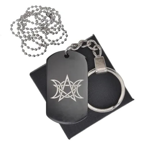 Сувенирный жетон из полированной черной нержавеющей стали с гравировкой Лунного пентакля.