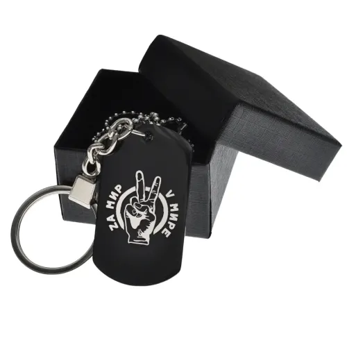 Размеры и комплектация: Размеры 49х28 мм. В комплекте кольцо для ключей, шариковая цепочка с регулировкой длины и подарочная коробка.