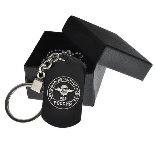 Сувенирный жетон ВДВ из черной нержавеющей стали с гравировкой.