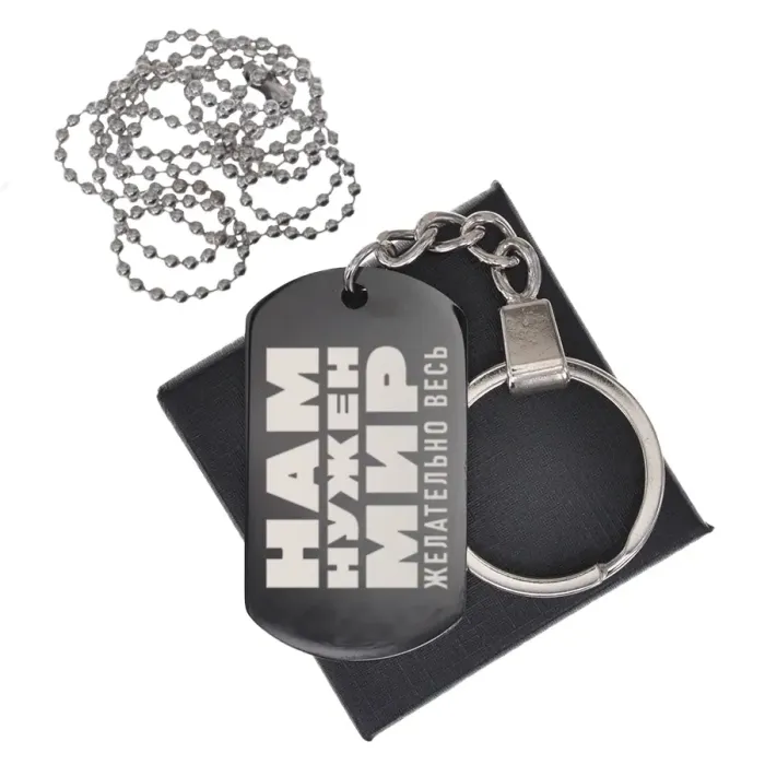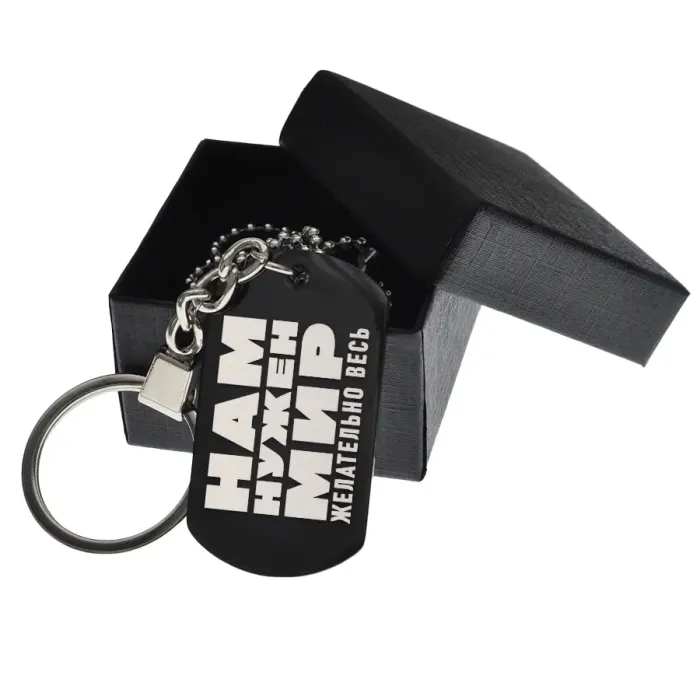 Размеры и комплектация: Размер 49х28 мм. В комплекте кольцо для ключей, шариковая цепочка с регулировкой длины и подарочная коробка.