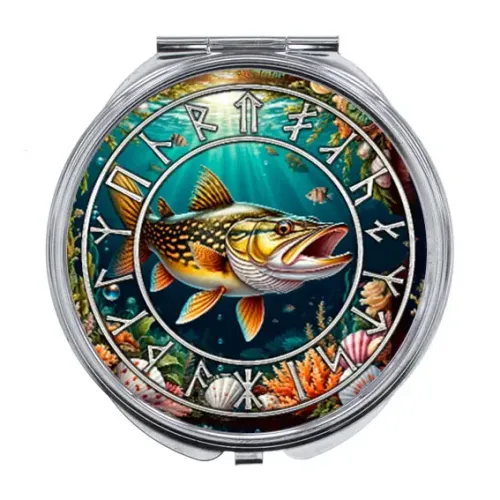 Складное зеркало Славянский Тотемный Годослов - Жемчужная Щука ZER-0500