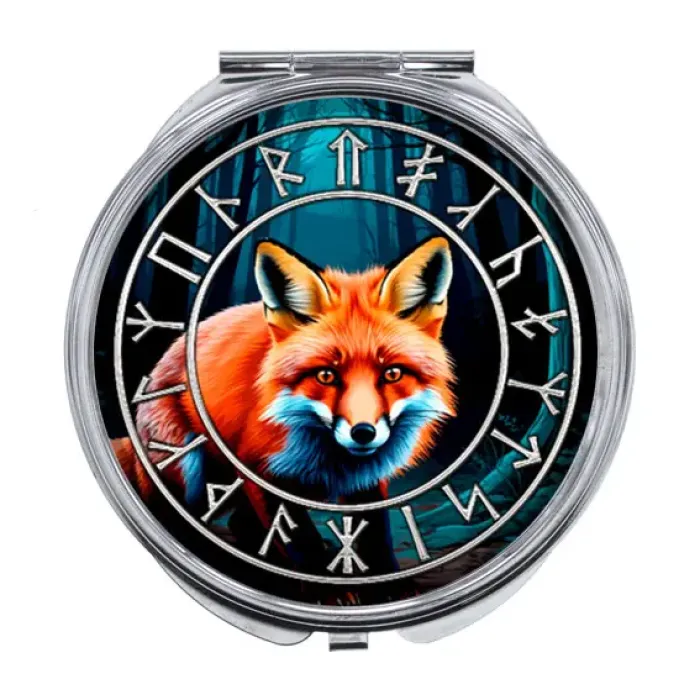 Складное зеркало с дизайном по мотивам славянского тотемного годослова, знак Крадущийся Лис.