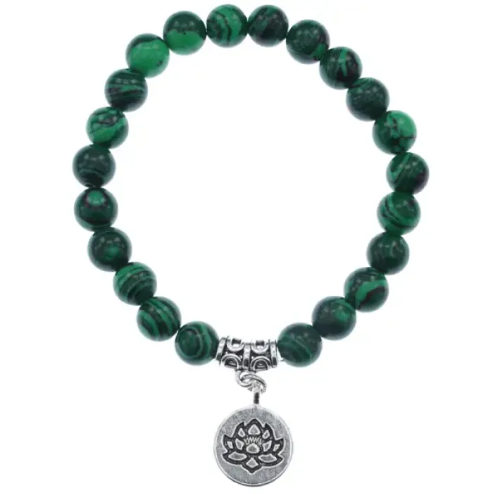 Браслет из синтетического малахита с подвеской в форме лотоса.