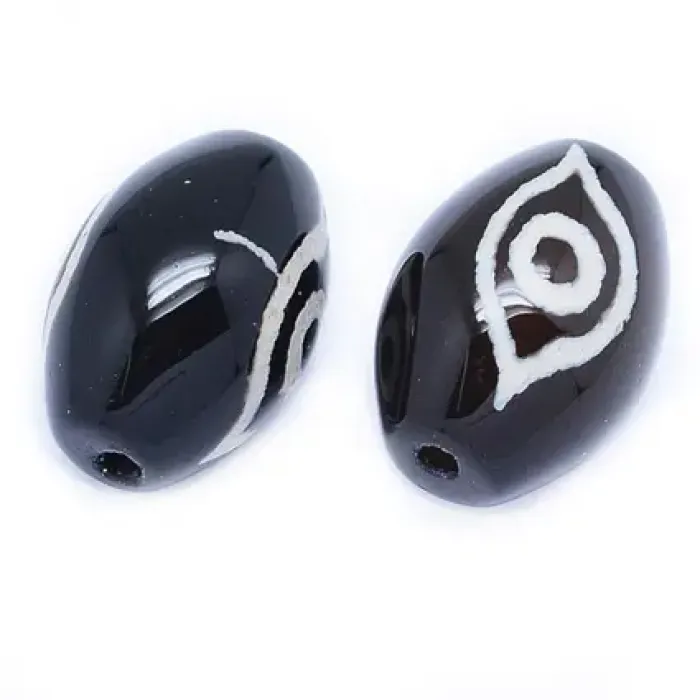 Тибетская бусина Дзи 2 глаза, натуральный агат выс.кач-ва, 1 шт, размер 14~14,5x10~10,5мм BDZ11-02-B
