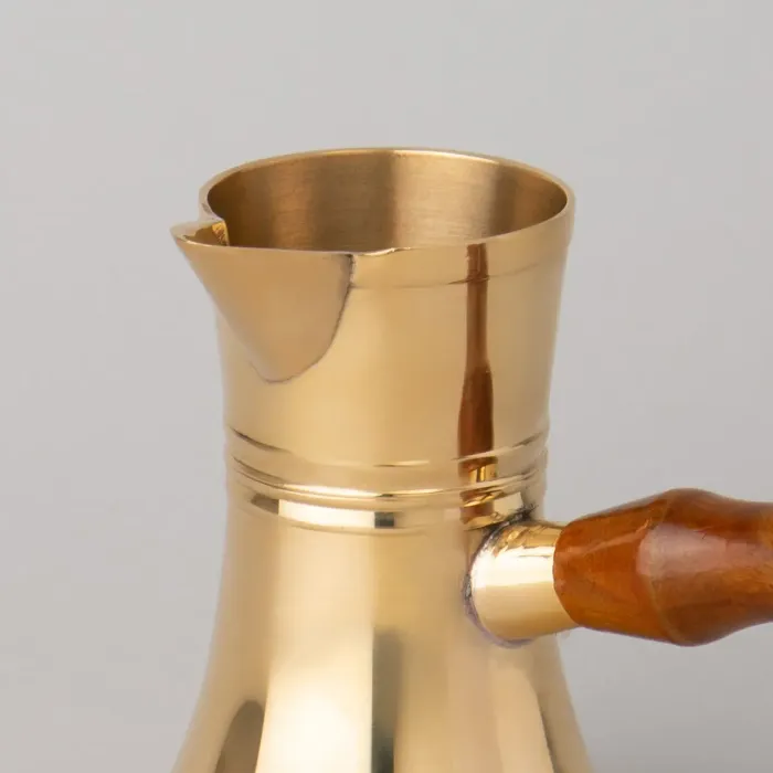- Материал: латунь, дерево- Размеры: 15x8x10 см- Объём: 200 мл- Совместимость: газовые, электрические, стеклокерамические плиты- Особенности ухода: чистка без абразивных средств, полировка мягкой тканью