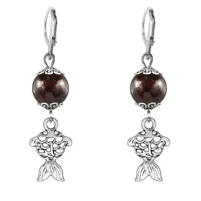 Серьги-амулеты Золотая рыбка (исполнение желаний), гранат SE-MKA22-27